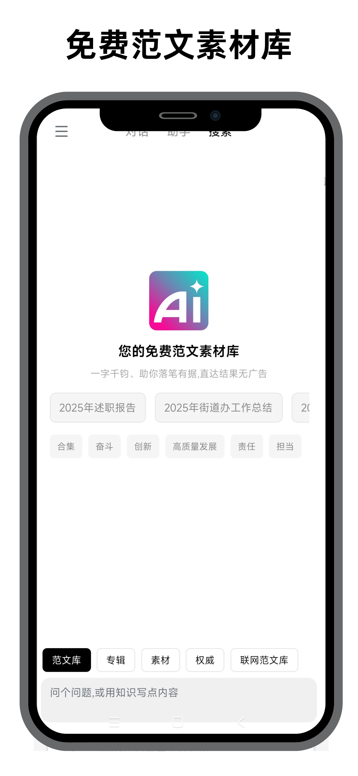 1、40W+范文、词语、金句、大纲、权威搜索、联网范文搜索 全部免费使用